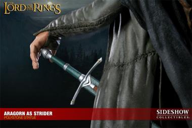 La version réalisée par Sideshow Collectibles montre le futur roi en Grand-Pas, un ami de Gandalf qui va défendre les hobbits contre les forces de Sauron.