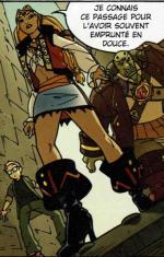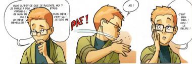 Bien que déstabilisant, ce passage place le lecteur dans une situation où le monde virtuel semble plus réel que le monde contemporain. Cette construction colle parfaitement aux propos du scénario qui verra quelques pages plus loin Karl passer dans le monde fictif. De plus, ce découpage a l’avantage de ne pas perdre du temps à décrire ces personnages virtuels quand ils prendront corps dans le monde réel car ils ont été déjà introduits avant.