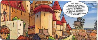 La première scène est assez déroutante. En effet, sans introduction, le lecteur voit un bateau de ce que l’on suppose être des pirates détruire une chaloupe de pêcheurs. Ensuite, l’histoire enchaîne sur une séquence subjective où un personnage principal donne des ordres à un ogre qui prend d’assaut un château fort…