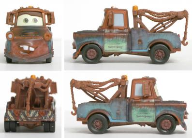 Ce jouet tiré du film Cars représente Martin la dépanneuse. Ce personnage est particulièrement marqué par le temps, du coup, il y a de nombreux détails à retranscrire dans la texture de ce jouet.