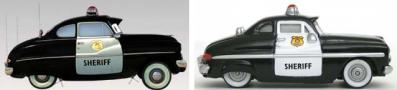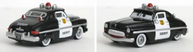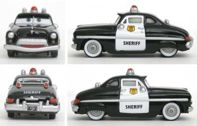 Ce jouet tiré du film Cars représente Sheriff qui, en tant que shérif de Radiator Springs, fut responsable de l’arrestation de Flash McQueen au début du film. Ce personnage est une Mercury de 1949 dont la peinture deux tons, noir et blanc, est typique des véhicules des représentants des forces de l’ordre aux Etats-Unis.
