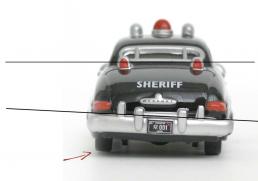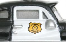 La mise en couleur est tout simplement une des plus réussies. Alors que Doc Hudson avait de nombreuses lacunes au niveau des chromes, Sheriff brille par sa finition, même la serrure de la portière est chromée. On notera aussi que les baguettes chromées du pare brise et de la lunette arrière ont aussi été chromées, ce qui est assez rare dans cette collection pour le souligner, mais étonnement les baguettes des vitres latérales ont été oubliées.