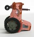 Ce tracteur bénéficie d’une réalisation soignée au niveau du moulage de la carrosserie. Sa forme colle parfaitement au personnage du film jusque dans le châssis qui reproduit le carter en forme de pie de vache. La seule concession faite concerne les rétros qui ont été collés à la carrosserie pour être plus résistant. La cheminée a aussi subit une légère modification, normalement sa base devrait être formée par un tube de diamètre plus fin que la chambre de décompressions, mais cela aurait fragilisé l’ensemble. Les mouleurs ont préféré commencer la cheminée par la chambre de décompression (qui est plus large) afin de la renforcer. Le plastique souple dont elle est faite permet d’encaisser sans peine les manipulations et les chutes (il vaut mieux plier que rompre).