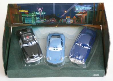 Ce pack contient trois véhicules, Sheriff, Sally et Doc Hudson. L’image de fond évoque une des scènes du film Cars où Flash McQueen décide de faire plaisir à Sally en illuminant Radiator Springs le temps d’un soirée. On voit sur l’image les habitants qui inaugurent la nouvelle route en dansant dessus, éclairés par la lumière des néons des enseignes qui ont été spécialement réparés pour cette occasion.