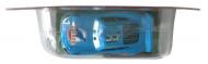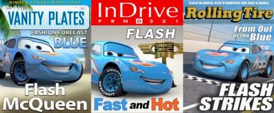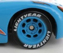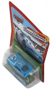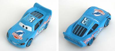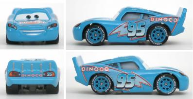 Ce jouet tiré du film Cars représente Flash McQueen avec la peinture qu’il revêt lors d’un délire où il s’imagine déjà sponsorisé par Dinoco revêtant la couleur bleue ciel de leur écurie.