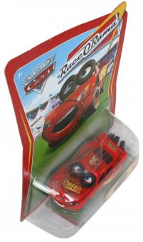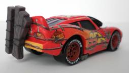 Ce jouet tiré du film Cars représente Flash McQueen lors de son entrée fracassante dans Radiator Springs, alors qu’il est poursuivi par Sheriff. Croyant qu’on lui tirait dessus, il a zigzagué au point de perdre le contrôle et de finir par emporter une clôture en fil de fers barbelés ainsi que deux pneus. Cette escapade qui se soldera par l’arrachage de la statue de Stanley et la destruction de la route le forcera à passer quelques jours à Radiator Springs pour réparer les dégats qu’il a occasionnés.
