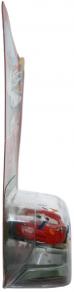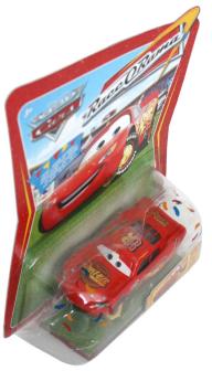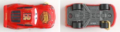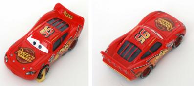 Ce jouet se rapproche du modèle standard (Flash McQueen n°1), les différences se situent bien entendu au niveau du sabot, mais aussi de la peinture qui porte les traces de rayures et de saleté récoltées suite a l’excursion de Flash sur la Route 66.