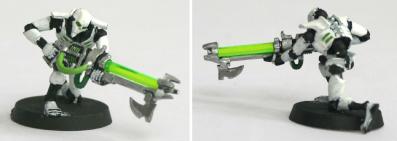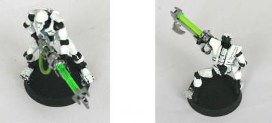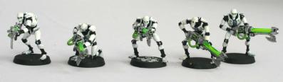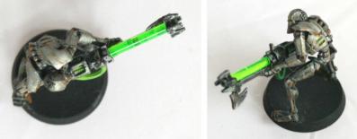 De plus vos Guerriers ont l’avantage d’être bien équipé de série sans Malus d’Arme Lourde, contrairement à une escouade de Space Marines équipée d’un laser par exemple. En comparaison, les Space Marines ont le triple désavantage qu’un seul Marine peut être équipé, que cela coûte 10 points et que cette Arme Lourde l’oblige soit à bouger soit à tirer mais pas les deux, ce qui est beaucoup plus contraignant qu’avec le Fusil à Fission des Necrons.