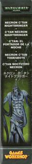 Les Nécrons, sont par essence des êtres sans âmes, sortis des ténèbres dont le seul objectif est la destruction. Par conséquent, utiliser une personnification de la mort comme guide suprême d’une armée de morts vivants mécaniques est tout à fait judicieux. Le Nightbringer est dans la catégorie de ‘’C Tan’’ ou être supérieur des Nécrons.