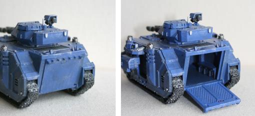L’assemblage du tank est relativement aisé, les roues sont fixes et moulées dans la carrosserie, les chenilles sont rigides et fixes. L’arrière du véhicule peut s’ouvrir pour laisser charger des passagers.