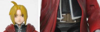 Notons aussi que l’une des paires de mains doit théoriquement permettre de créer une pose où Edward claque dans ses mains (pour faire de l’alchimie). Mais comme le montre les photos ci-dessous, il est très difficile d’arriver à joindre les mains parfaitement à plat. Le personnage est très mobile avec ses nombreuses articulations, mais pas suffisamment pour reproduire correctement cette pose.