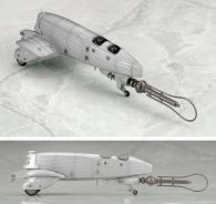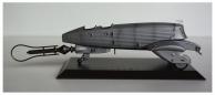 Miniature de mecha posée sur un socle signé au nom de la série (le véhicule est indépendant du socle).