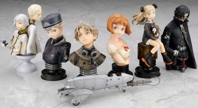 Cette collection de trading figurines, réalisée par Alter en 2006, repend les différents protagonistes de la série animé Last Exile. Les 7 figurines, faites en PVC et ABS, sont réparties en 5 bustes, 1 figurine en pieds et 1 mecha (le Vanship). A noter qu’en tant que trading figurines, elles sont vendues de façon aléatoire (on ne sait pas quel personnage est dans la boite) avec une des figurines plus rares que les autres (ici le Vanship).