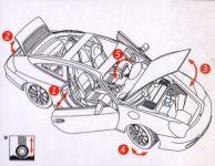 L’intérieur n’est pas en reste, il reproduit fidèlement l’habitacle du modèle original. Les spécialistes remarqueront qu’il s’agit d’un modèle avec boite auto et régulateur de vitesse (le deuxième levier à gauche du volant) et volant trois branche (sportif), on remarque aussi que ce modèle n’a pas le système de navigation (il s’agissait d’une option rare car elle était particulière onéreuse au regard de son usage). Comme pour le coffre et le moteur, de nombreuses pièces sont peintes : les poignées de porte, le bouton rouge des attaches de ceintures, le levier de vitesse, le bouton warning et la poignée de la boite à gant. Il ne manquait plus que les 6 boutons noirs de part et d’autre de l’auto radio pour que ce soit complet.