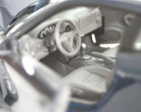 Ce modèle réduit au 1/18ème reproduit fidèlement la Porsche 996 Targa originale. La version Targa se distingue par un toit en verre qui permettait de profiter du paysage, sur le modèle réduit, ce toit transparent permet surtout d’admirer les détails du moulage de l’habitacle.
