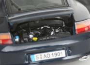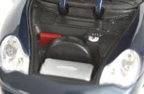Le capot avant et arrière peuvent s’ouvrir, on découvre alors que de nombreuses pièces du moteur ont été peintes et que la garniture intérieur du capot a aussi été moulée. Le coffre avant n’est pas en reste, la valise (Porsche design), la trousse à outils et le réservoir de liquide lave-glace sont peints eux aussi et là encore une pièce de plastique moulée représente la structure métallique interne du capot, c’est un détail suffisamment rare pour le souligner.