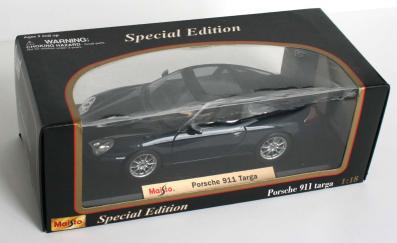 Voici les images de la boite de la Porsche 911 Targa 1 : 18ème réalisé en 2002 par Maisto.