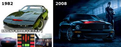 K.I.T.T., une Ford Mustang Shelby GT500KR (King of the Road) de 2008 est encore plus sophistiquée que son ancêtre. Outre son intelligence artificielle, ça carrosserie pare-balles et sa capacité de sauter par-dessus des obstacles, la différence majeur avec la version originale est qu’elle peut modifier son apparence extérieure, c’est-à-dire qu’elle peut en quelques secondes seulement, changer de couleur ou de carrosserie. La voiture peut se transformer en cabriolet, en SUV ou en Pick-up, afin de rapidement devenir incognito en cas de besoin. En ce qui concerne la version originale, le seul moyen de passer pour une autre voiture était de changer de plaque d’immatriculation.