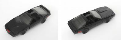 Les différences entre le jouet et le véhicule de la série TV sont surtout visibles sur l’avant et l’arrière de la voiture. A l’avant, la lumière rouge qui balaye la calandre de KITT est théoriquement en retrait du pare-choc et à l’aplomb du rebord du capot. Sur le jouet, l’éditeur a simplement collé un autocollant sur le pare-choc avant. En outre, ce pare-chocs est le pare-chocs d’origine de la Firebird et non la version adapté par Universal Studios pour la série.