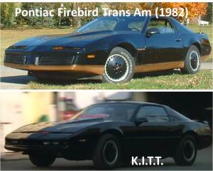 En 1982, l’année de sortie de K2000 aux Etats-Unis, les producteurs ont dû trouver un véhicule pour incarner le héros mécanique de la série. Par chance, cette même année, la marque Pontiac a sorti la troisième génération de sa Firebird, qui à l’époque était révolutionnaire en termes d’aérodynamisme. La trouvant donc déjà très futuriste, les producteurs ne ressentaient pas le besoin de changer grand-chose à l’extérieur de la voiture. Ils ont donc pris la Firebird Trans Am (le modèle le plus puissant) qui esthétiquement se démarquait des autres version par son capot asymétrique et ont remplacé le pare-chocs avant par un modèle made in Hollywood afin d’intégrer le « scanner », les diodes rouges.