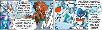 Alors que les Légendaires commencent à remercier ces deux divinités, Aube éclate volontairement la fiole dans sa main, répandant son inestimable contenu sur le sol.