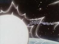 N’ayant pas réussi à les convaincre, Albator décide de protéger la terre tout seul en tentant de détruire la sphère avec des aérotorpilles. Malheureusement, non seulement l’attaque d’Albator ne fait rien, mais la sphère réagit en attirant l’Atlantis vers elle.