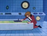 Celui-ci refuse et jette son verre sur l’hologramme pour le faire disparaître. De son côté, Nausica a trouvé la source de la projection. Il s’agit d’un petit vaisseau volant près de la coque de l’Atlantis. Albator ordonne alors sa destruction pour ne plus être importuné.