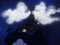 Dans l’anime il le fabrique en douce pour pouvoir se barrer d’un endroit qui est à la fois la mine où il est quasi esclave avec Albator mais aussi une planète en fin de vie puisqu’elle doit être percutée sous peu par une autre. Et que c’est cette volonté humaniste de fabriquer une sorte d’arche de Noé (pour tout le monde cette fois) qui séduit Emeraldas.