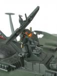 Pour compléter le rendu visuel (pourtant déjà excellent), Aoshima a pris soin d’installer un système d’éclairage à base de diodes dans le vaisseau. Les piles sont à l’avant de l’appareil et les diodes illuminent le poste de pilotage, le dôme arrière, la nacelle arrière et les réacteurs. Le rendu est vraiment excellent même en plein jour, malheureusement les photos que nous avons faites ne peuvent pas retranscrire correctement l’impression perçue par notre œil face à cet objet.
