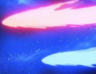 Le tire envoie deux lasers de charge opposée qui fusionnent en un seul en prenant l’apparence d’un dragon. Ce laser semble avoir la propriété de modifier sa trajectoire pour atteindre une cible. Ainsi, après avoir détruit le premier vaisseau pirate, le laser change de direction pour atteindre le second. Les deux vaisseaux pirates sont anéantis Quant au Karyu, malgré les disfonctionnement du canon, il semble intact.