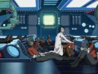 Ishikura se porte volontaire pour faire une sortie et réparer la brèche, il nous gratifie d’un long discours comme quoi, il est le seul qui est inutile sur la passerelle et que la mission pourra continuer même s’il meurt. Ce à quoi Warius répond qu’ils ne pourront pas continuer sans lui, donc il doit revenir. Ishikura ajoute qu’il fait ça parce que si l’équipage humain meurt, il n’y aura plus personne pour réactiver les humanoïdes (donc en clair : Ishkua ne fait pas ça pour sauver les humains, ou sa vie, il fait ça pour sauver les humanoïdes… Quel altruisme, surtout de la part de quelqu’un qui détestait les humanoïdes depuis 9 épisodes, le revirement est aussi spectaculaire que peu crédible…).