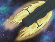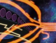 Le Karyu ne peut donc plus faire demi tour et se retrouve condamné à être détruit en entrant dans le champ de gravitation (bon ça c’est ce qu’ils disent dans l’animé, mais en réalité, il suffit que le Karyu fasse demi tour pour utiliser ses propulseurs arrière qui eux sont encore en état.)