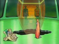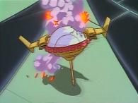 Pendant ce temps là, le Walhalla a envoyé un malheureux détachement de chasseurs pour affronter le vaisseau mère d’Alberich. On assiste donc à une parodie de combat entre des moucherons (les chasseurs) et le gigantesque vaisseau d’Alberich. Il ne se passe rien de palpitant, ils se font décimer sans égratigner la forteresse. En tant que spectateur, on se demande bien pourquoi Wotan envoie des chasseurs. Si d’énormes satellites capables d’abattre une flotte de croiseurs n’ont rien pu faire contre cet engin (voir épisode 5), comment de tous petits chasseurs pourraient faire quoi que se soit ? Encore un raté narratif aussi inutile que soporifique…