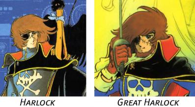Miimé et les Walkyries de Wotan admirent Great Harlock sans qu’on sache pourquoi. A aucun moment ce personnage ne démontre en quoi il est si formidable. Il ne fait preuve d’aucun sens tactique et d’aucun courage particulier. Son orgueil, doublé d’un excès de confiance en lui, frise même la bêtise lorsqu’il laisse délibérément monter Hagen (le fils d’Alberich) avec une bombe sur le corps. Si le hasard n’avait pas été de leur côté, Great Harlock et le Docteur Ôyama seraient morts.