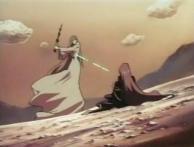 Pendant qu’Emeraldas se battait avec Sirène, le Capitaine Harlock (Albator) est intervenu pour récupérer Toshirô en détruisant au passage la moitié du château de Sirène avec son vaisseau le Death Shadow 2 (ce vaisseau ressemble à celui d’Albator 78). Cette apparition d’Albator est du fan service pur jus, car Emeraldas pouvait très bien s’en sortir seule, son intervention n’a rien changé au déroulement de l’histoire. Au moins, cela permet au producteur de vendre des licences pour faire des jouets à l’effigie du pirate borgne et de son vaisseau.