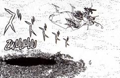 Mais la traque du sous-marin doit être rapidement abandonnée car les radars de l’Arcadia ont découvert une flottille de vaisseaux sylvidres qui s’approche de la Terre. L’Arcadia quitte alors l’atmosphère terrestre pour éliminer ces vaisseaux avant qu’ils n’atteignent leur objectif. C’est l’occasion d’utiliser, pour la première fois dans ce manga, le tranchoir de proue. Quelques vaisseaux de sauvetage arrivent à cependant à s’échapper avant l’explosion du vaisseau mère.
