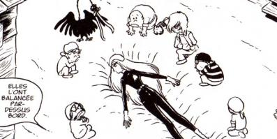 Leiji Matsumoto a toujours du mal à rester cohérent d’une série à l’autre, mais aussi à l’intérieur même d’une série. Nous avons déjà abordé ce problème dans l’Anneau des Nibelungen, mais le problème est similaire dans ce manga. En effet, dans le tome 1, Albator dit page 208 qu’Emeraldas a accompagné Toshirô dans la mort (c’est pour cela qu’il ne se laisse pas prendre par le piège des sylvidres), or dans ce tome, page 200, Albator dit devant la tombe de Toshirô qu’Emeraldas parcourt toujours l’espace à sa recherche, plus tard il demandera au barman s’il a vu Emeraldas et l’espace d’un instant, il confondra même la Reine Sylvidra avec Emeraldas.