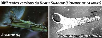Notons que dans le tome 3 page 30 de la VF de L’Anneau des Nibelungen, ce vaisseau est présenté comme le premier Death Shadow, pourtant page 46 c’est celui du dessus qui est présenté comme le premier Death Shadow et il le restera pendant les 4 tomes suivant, on peut donc penser que ce vaisseau est bien le second Death Shadow et que le texte de la page 30 est une erreur.