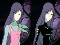 - Dans Albator 78 ce sont les sylvidres qui ont éradiqué son peuple et elle est la dame de compagnie d’Albator (elle semble être son amante, mais sa relation avec lui n’est pas claire).