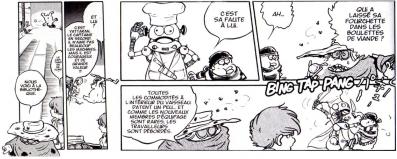 Notons qu’Harlock Saga qui reprend pourtant l’histoire des deux premiers tomes de L’Anneau des Nibelungen, ne s’attarde pas sur le personnage de Yattaran. Sa bagarre avec le robot cuisinier n’est pas présente, et il a l’air bien plus posé que la version du manga.