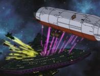 On notera que dans ces deux derniers épisodes, lors de l’attaque des pirates, le Queen Emeraldas semble être dépourvu de la moindre âme ou volonté propre puisqu’il se laisse canarder par les pirates sans réagir.