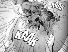 Avant de les emmener, il raconte comment et pourquoi il a trahit son peuple, laissant le temps à un autre dragon bleu, Tyrygosa, de venir à la rescousse. (Note de l’auteur : lui, il a suivi les cours des vilains de la Sentaï School avec mention très bien).