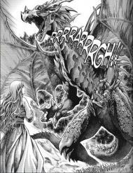 Les morts-vivants battus, le groupe trouve un oeuf magique dans les restants de la maison d’Anveena. Quand la jeune fille le prend dans les mains, il éclot donnant naissance à un dragon de vol inconnu.