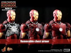 Après le succès du film Iron Man des studio Marvel, Hot Toys a réalisé la figurine "MARK III Figure (Battle Damaged Version)" reprenant le personnage principal du film.